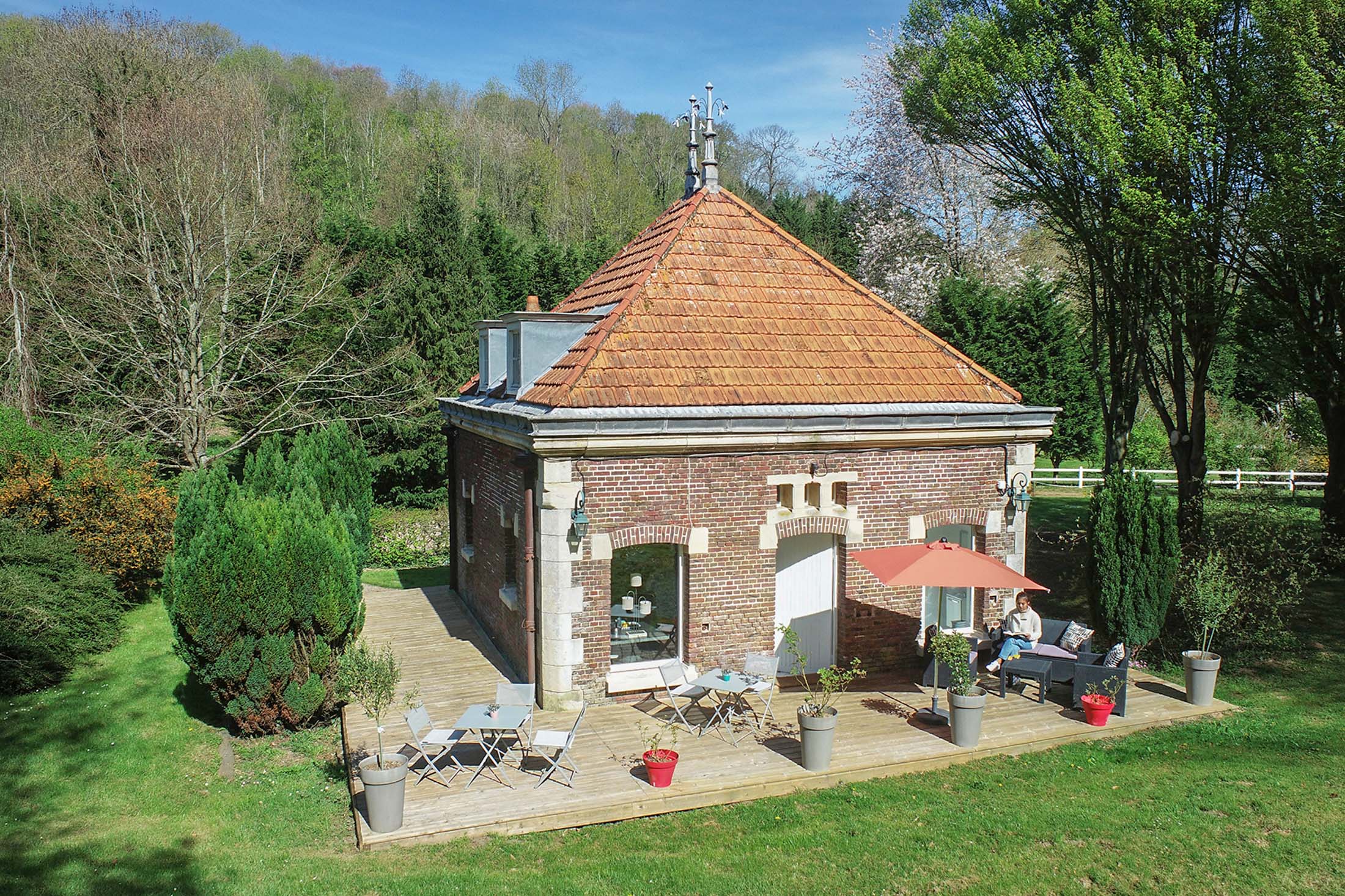 Situé dans le parc du Domaine de Joinville en lisière de bois, La Maison des Chevaux est un gite exceptionnel qui vous permettra de vous ressourcer dans un environnement calme et apaisant. Pour un séjour entre amis, en amoureux, en famille, notre gite vous ravira avec son équipement unique : RDC : salle/salon, cuisine équipée, salle de douche, toilettes séparés, à l’étage : 2 chambres doubles et 1 salle de douche, 1 lit individuel sur la loggia, à l’extérieur : terrasse privée, canapé et salon de jardin, parasols …